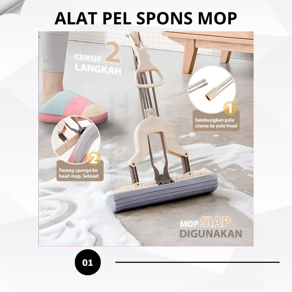 Pel Lantai Spons Praktis allsize, mudah diperas tanpa tangan, kepala pel bisa ditekuk 180°, praktis buat ngepel dan cepat kering. Awet & nyaman dipakai!