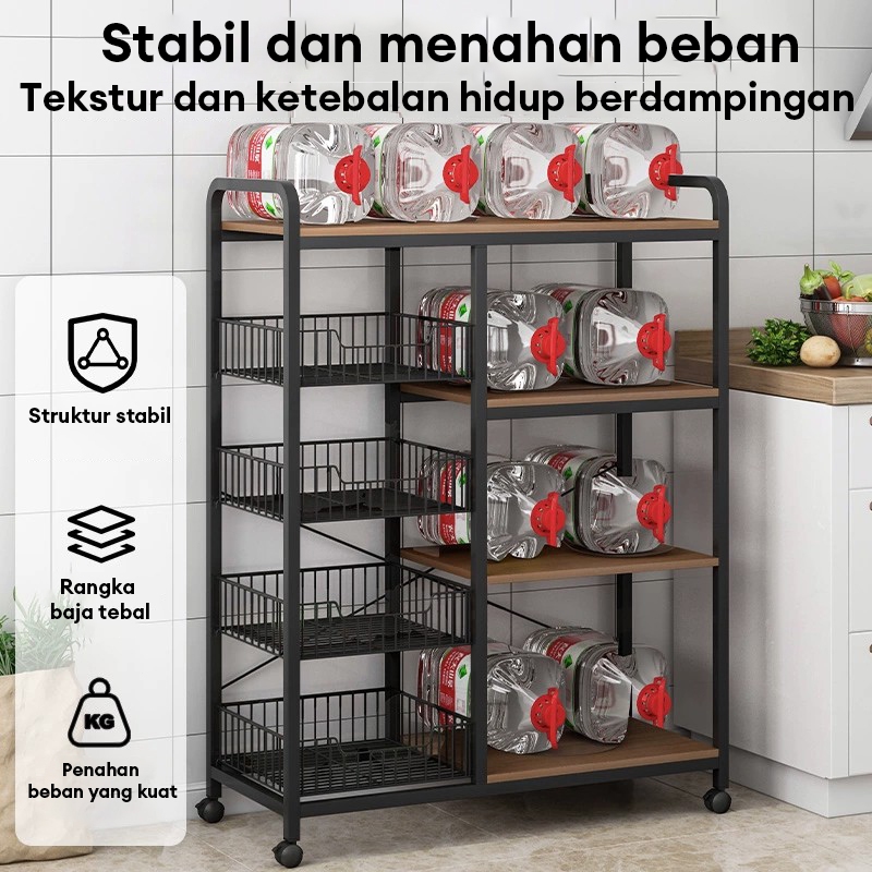 Rak dapur minimalis allsize, kuat & multifungsi! Muat oven, microwave, bumbu, buah, dll. Praktis, ada roda, tahan beban berat. Bikin dapur makin rapi!