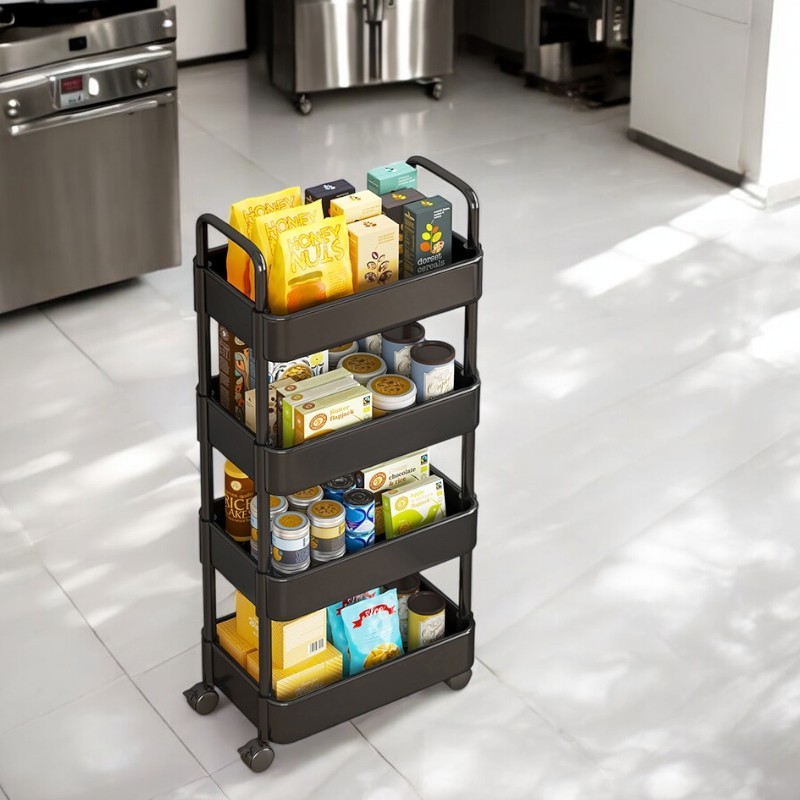 Rak troli serbaguna ini punya 4 susun yang luas, cocok buat kamu taruh di dapur, kamar mandi, ruang cuci, atau ruang kerja. Gak cuma kokoh, rak ini juga bisa menampung beban sampai 30 kg, jadi aman buat nyimpen barang-barang berat.