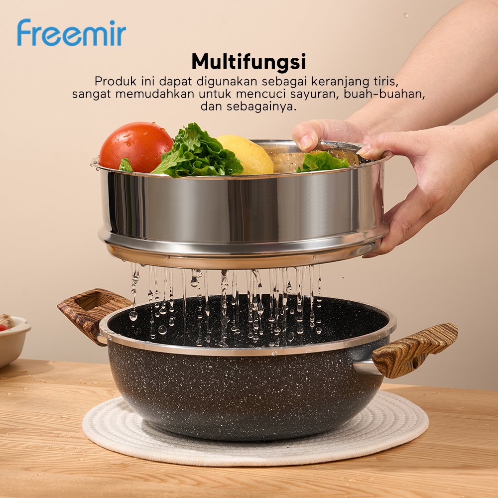 Wajan kuping multifungsi allsize, granite anti lengket. Bisa buat kukus, goreng, sampai jadi keranjang saringan. Praktis, anti ribet!